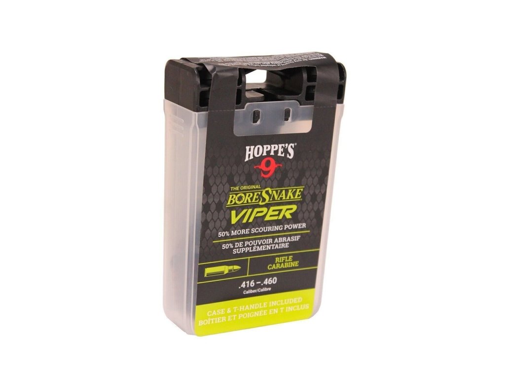 BoreSnake Viper with Den Rifle kal. .416-.460 je rýchly a spoľahlivý čistiaci nástroj určený pre malé a stredné hlavne pušiek aj karabín. Viper verzia prináša pevnejšie tkanie, zväčšenú čistiacu sekciu a integrovanú bronzovú kefu, ktorá efektívne odstraňuje olovené a kovové usadeniny, sadze a prach jediným pretiahnutím.