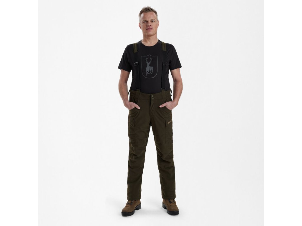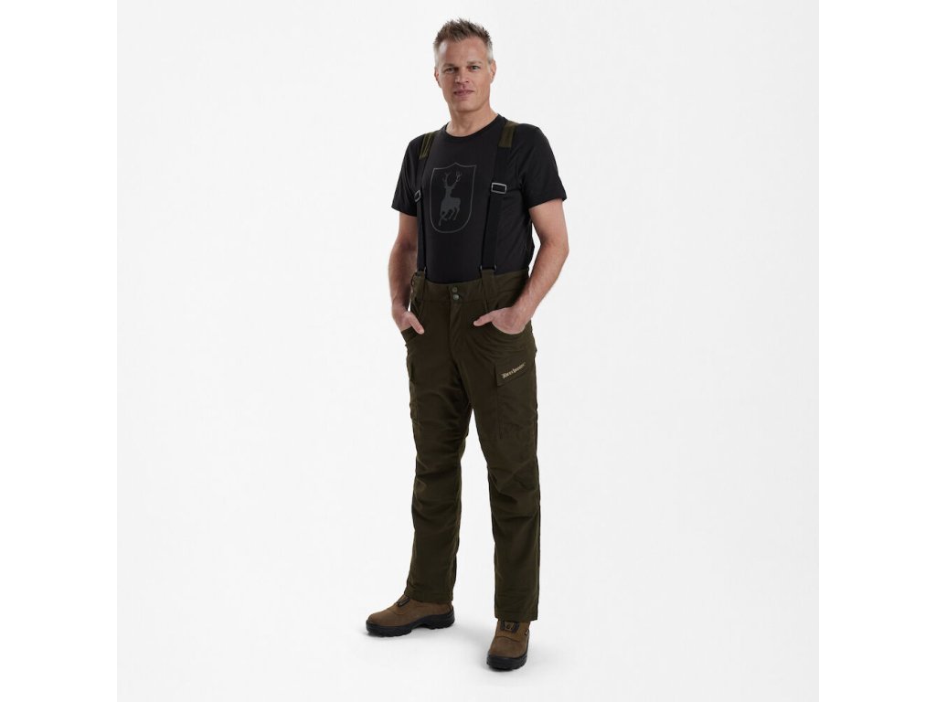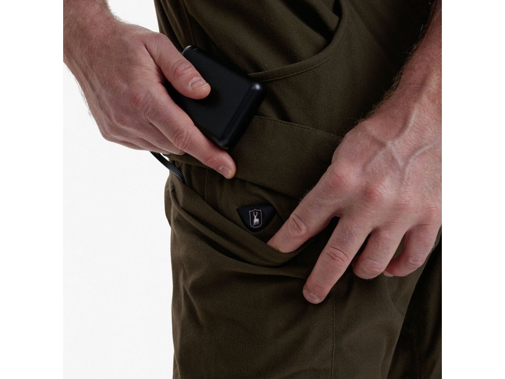 Nohavice DEERHUNTER Heat Game so šitými trakkovými popruhmi sú určené pre každého, kto chce zostať v teple za každého počasia. Disponujú integrovanou vyhrievacou funkciou s ohrevnými prvkami umiestnenými na stehnách a v dolnej časti chrbta. Inteligentné trojstupňové nastavenie teploty je možné jednoducho regulovať pomocou ovládania v stehennom vrecku, ktoré sa aktivuje jediným stlačením tlačidla. Vďaka tomu máte teplotu plne pod kontrolou a môžete si ju prispôsobiť svojim potrebám.