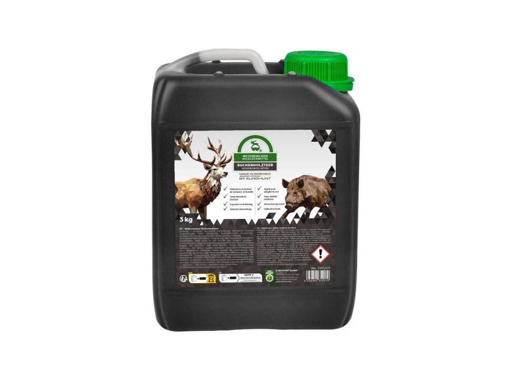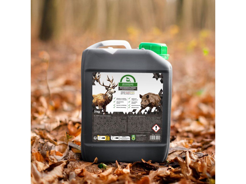EUROHUNT bukový decht (Buchenholzteer) je osvedčený a mimoriadne účinný vábivý prostriedok na zver, ktorý sa používa pri prikrmovaní a love už desiatky rokov.