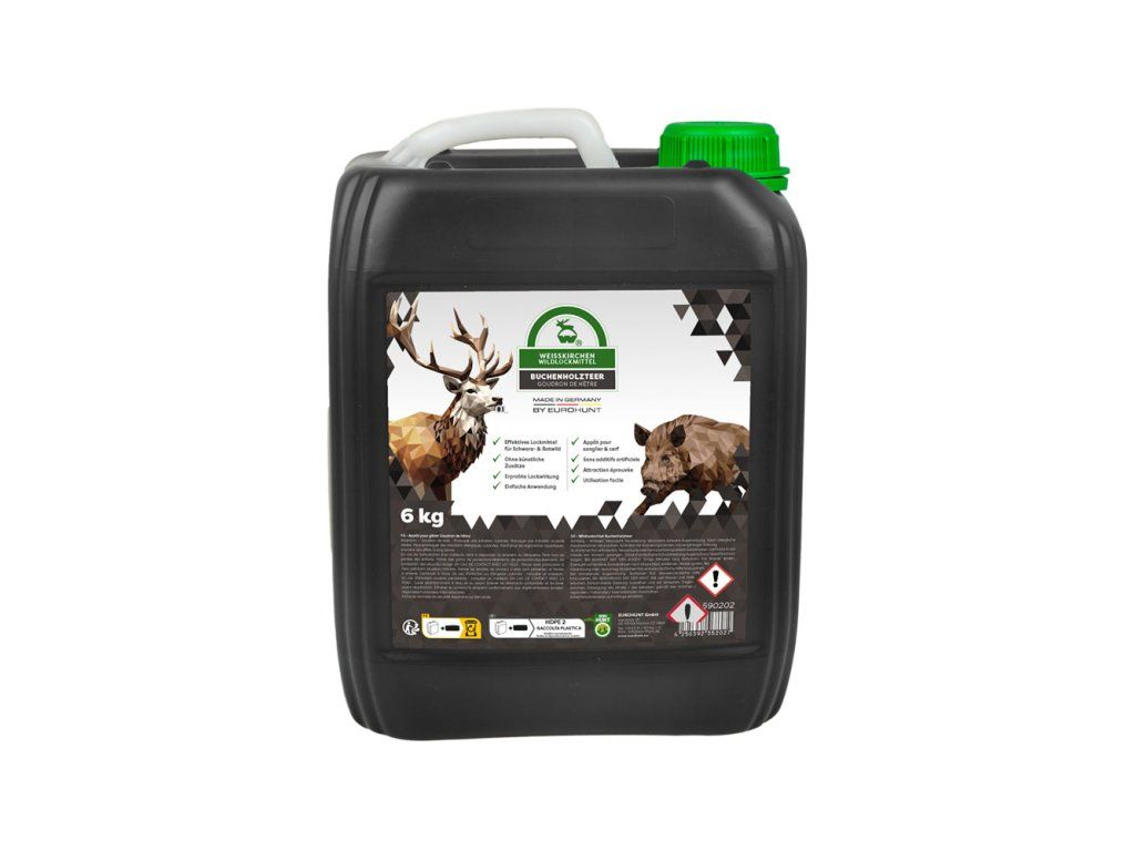 EUROHUNT bukový decht (Buchenholzteer) je osvedčený a mimoriadne účinný vábivý prostriedok na zver, ktorý sa používa pri prikrmovaní a love už desiatky rokov.