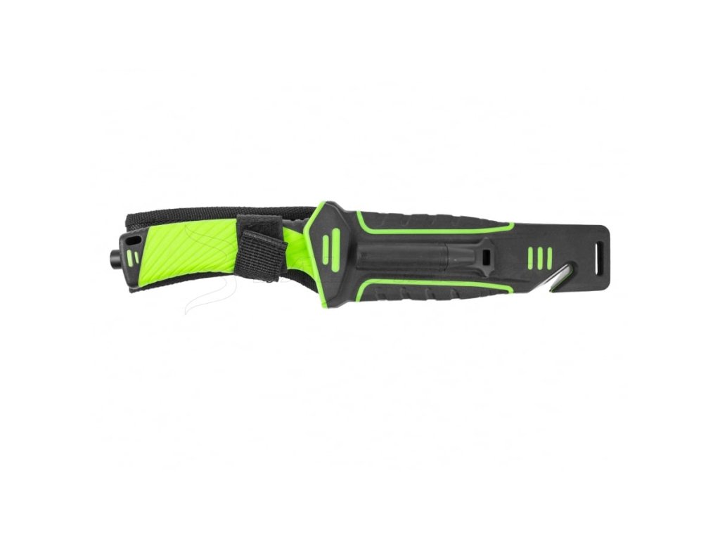 Čepeľ je vyrobená z nehrdzavejúcej ocele 7Cr17, ktorá je odolná voči opotrebeniu a skvelo drží ostrie. Ergonomicky tvarovaná čepeľ má pogumovaný povrch pre bezpečnú manipuláciu. Rukoväť má fosforeskujúce prvky, aby ste našli nôž aj po tme. Na konci rukoväte sa nachádza matica, po jej odskrutkovaní je možné oddeliť rukoväť od čepele. Matica sa zároveň dá použiť na rozbíjanie sklených výplní. Na rukoväti sa nachádza otvor na šnúrku.