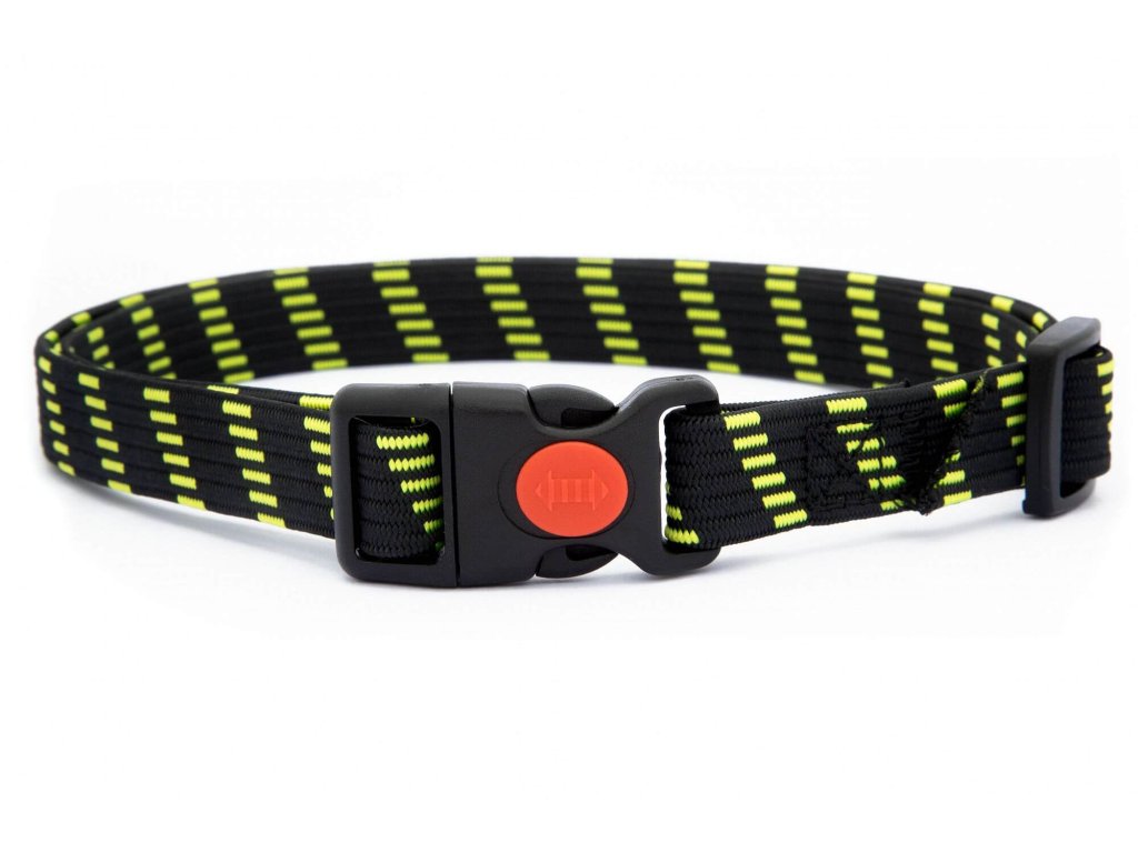 Obojok GUMA je k dispozícii v čierno-zelenej, čierno-oranžovej a čiernej farbe.