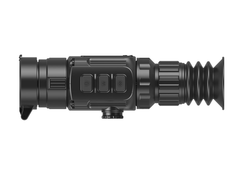Zariadenie má kvalitný displej typu OLED s rozlíšením 1024×768 px, podporuje digitálne zväčšenie 1×/2×/4× a má internú pamäť 32 GB na nahrávanie videí a fotografií. Funkcie ako vstavané Wi-Fi (možnosť pripojenia viacerých zariadení), digitálny kompas, senzor naklonenia („msensor“), režim Ultra-Clear pre zhoršené podmienky a možnosť externého napájania cez USB-C dopĺňajú praktickú výbavu. Konštrukcia je kompaktná (rozmery približne 195×61×61 mm), hmotnosť menej ako 420 g, batéria typu CR123×2 (výdrž okolo 4 hodín) a vysoká odolnosť proti otrasom a výstrelu až do úrovne ~1000 G robí z tohto modelu spoľahlivú voľbu pre poľovníkov a taktické využitie.