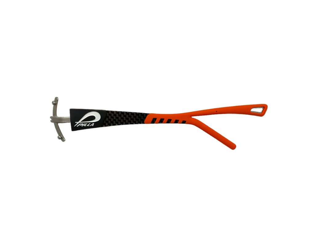 V roku 2012 sme vyvinuli túto patentovanú geometriu straničiek, ktorá sa stala ochrannou známkou modelov Pilla. Vidlica vytvára 4 kontaktné body, ktoré znižujú hmotnosť na prednej strane okuliarov a umožňujú rámu plávať. Funguje podobne ako dve ruky podopierajúce hlavu. Dizajn je zámerne dlhý, aby sa obopínal okolo zadnej časti hlavy. Ručnou manipuláciou s koncami sa dizajn dá ľahko prispôsobiť tvaru hlavy.