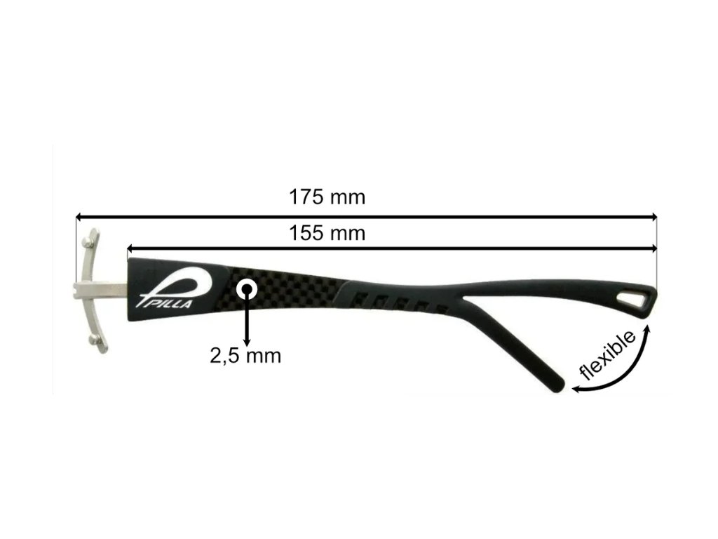 V roku 2012 sme vyvinuli túto patentovanú geometriu straničiek, ktorá sa stala ochrannou známkou modelov Pilla. Vidlica vytvára 4 kontaktné body, ktoré znižujú hmotnosť na prednej strane okuliarov a umožňujú rámu plávať. Funguje podobne ako dve ruky podopierajúce hlavu. Dizajn je zámerne dlhý, aby sa obopínal okolo zadnej časti hlavy. Ručnou manipuláciou s koncami sa dizajn dá ľahko prispôsobiť tvaru hlavy.