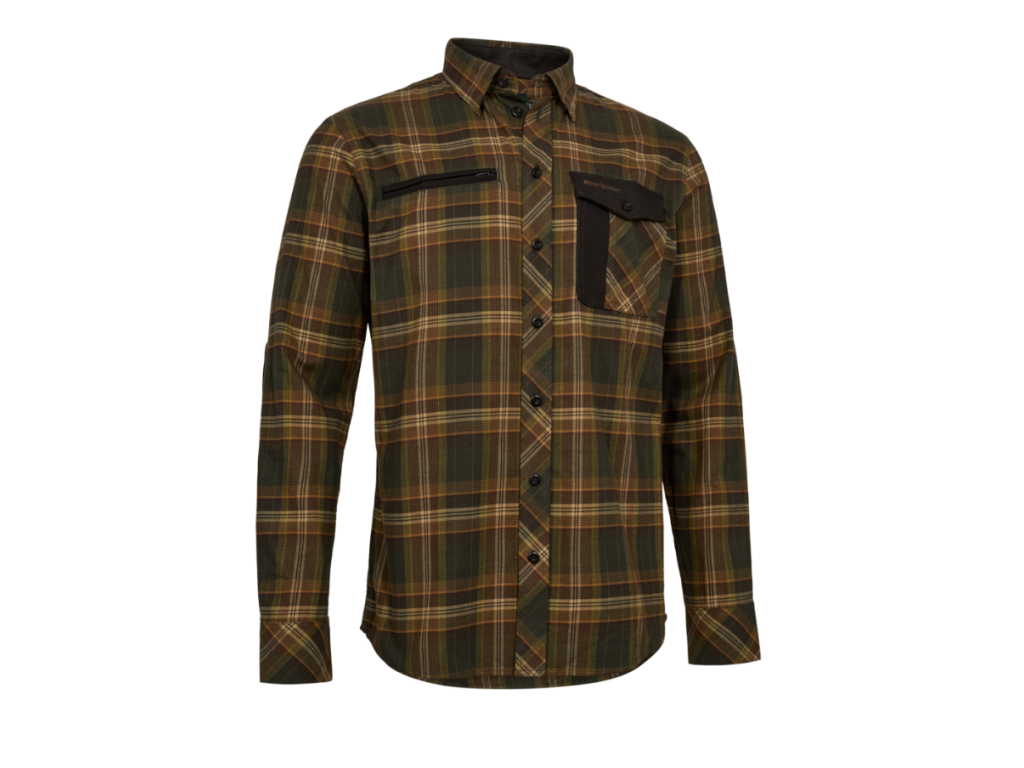 Košeľa Bennett kombinuje klasický poľovnícky štýl s premyslenou funkčnosťou pre dni v teréne. Je navrhnutá so zadnými záhybmi pre väčší rozsah pohybu a zaisťuje celodenné pohodlie, či už dvíhate brokovnicu, výstroj alebo sa pohybujete po nerovnom teréne. Dve náprsné vrecká, jedno so zipsom a jedno s klopou, udržia potrebné veci poruke a bezpečne. Decentné detaily v semišovom štýle umocňujú vzhľad bez toho, aby boli ohrozené v praktickosti.