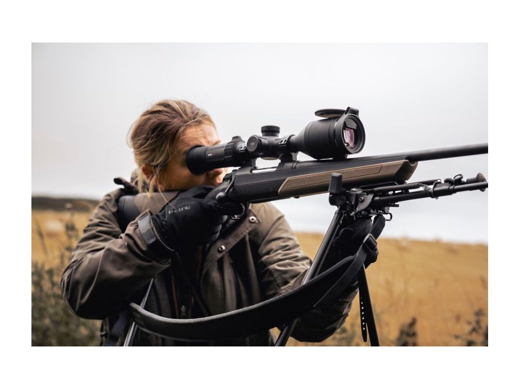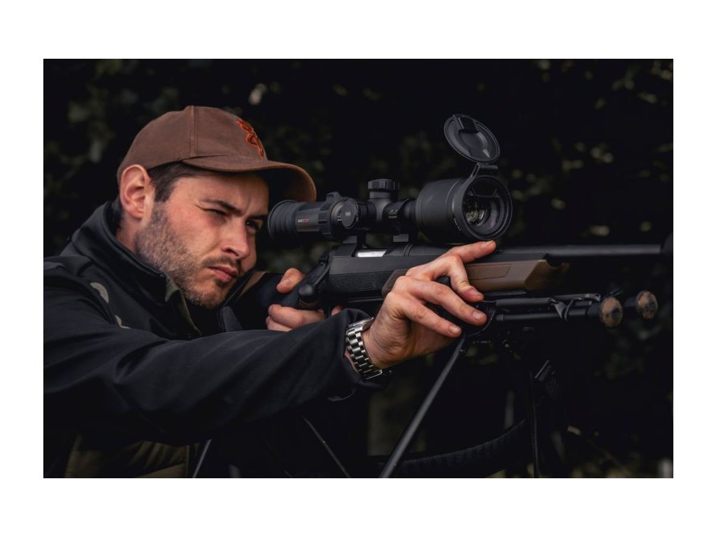 Vstavaný laserový diaľkomer (LRF) s dosahom približne 1 200 m poskytuje spoľahlivé meranie vzdialenosti a spolu s balistickou kalkulačkou umožňuje vysokú presnosť zásahu. Displej typu AMOLED s rozlíšením 1920 × 1200 px zabezpečuje pohodlné a čisté zobrazenie cieľa, zatiaľ čo ergonomické parametre ako výstupná pupila 10 mm, očný reliéf 48 mm a tubus priemeru 30 mm zaručujú komfortné držanie a montáž.