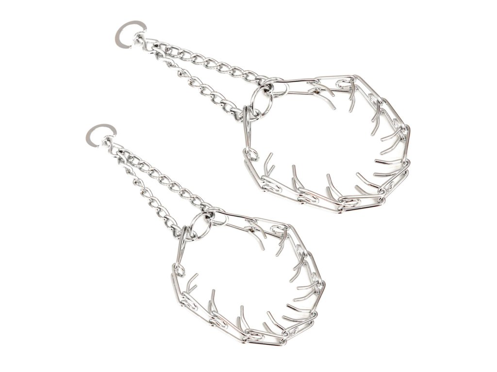 Kovový obojok s ostňami je vyrobený z pevného materiálu s chrómovou povrchovou úpravou.