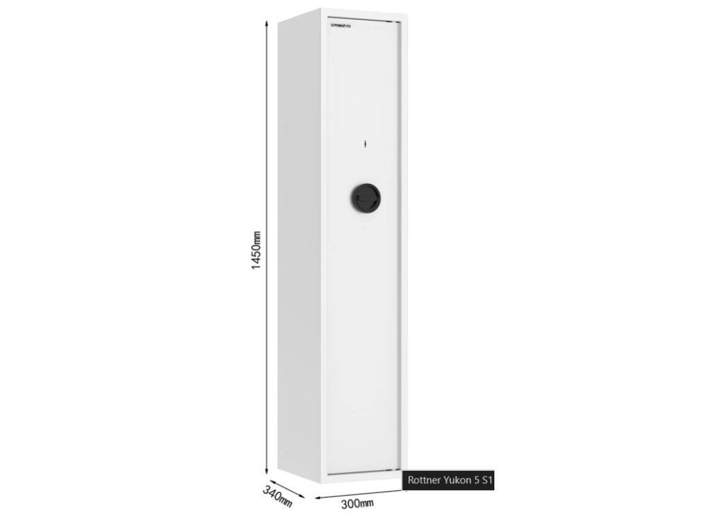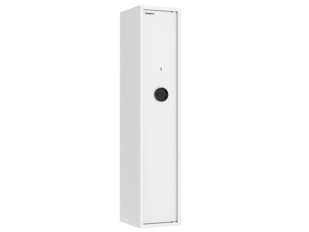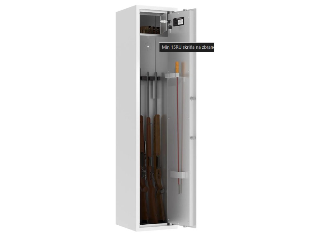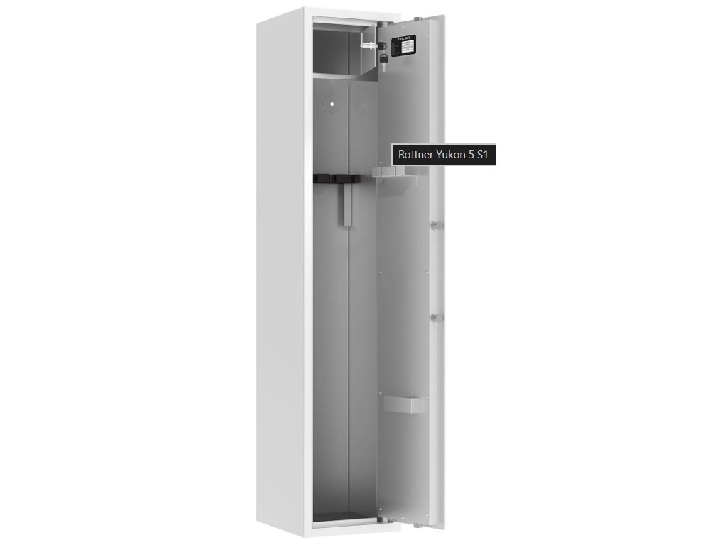 Skriňa na celkovo 5 dlhých zbraní ponúka bezpečnostné dvere, na ktorých vnútornej strane nájdete držiak na náradie, ktoré používate pri čistení zbraní. Zároveň je v hornej časti umiestnená samostatne uzamykateľná skrinka s cylindrickým zámkom a 2 kľúčmi, ktorú môžete využiť napríklad na uskladnenie munície. Skriňa spĺňa bezpečnostnú triedu S1 a aj požiadavku na Min 15 RU a vyhovuje požiadavkám na úschovu zbraní a streliva, ktoré sú stanovené zákonom č.190/2003 Zb.z. Skriňa má otvory na ukotvenie na spodnej aj zadnej strane a ukotviť ju môžete na podlahu alebo na stenu. Potrebný kotviaci materiál je súčasťou balenia.