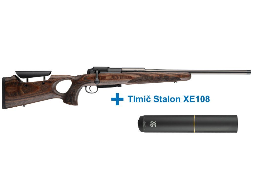 Pažba s otvorom na palec vyrobená z vrstveného dreva, ktorá je už obľúbená u MAUSER 12 a MAUSER 18 je dostupná aj pre MAUSER 25. Pažba MAUSER 25 Max sa vyznačuje maximálnou stabilitou v kombinácii s ergonomickou polohou ruky. Stalon XE108, extrémne odolný tlmič s teleskopickým dizajnom (over-barrel) a inteligentným systémom vymeniteľnej prednej časti. Oproti verzii X108 má XE108 predĺženú zadnú časť, ktorá ešte viac prekrýva hlaveň, čím dosahuje pozoruhodný útlm -31 dBc (0.308). S krátkym predĺžením hlave a nízkou hmotnosťou je Stalon XE108 jasnou voľbou pre dobre vyváženú zbraň pre väčšie a magnum kalibre.