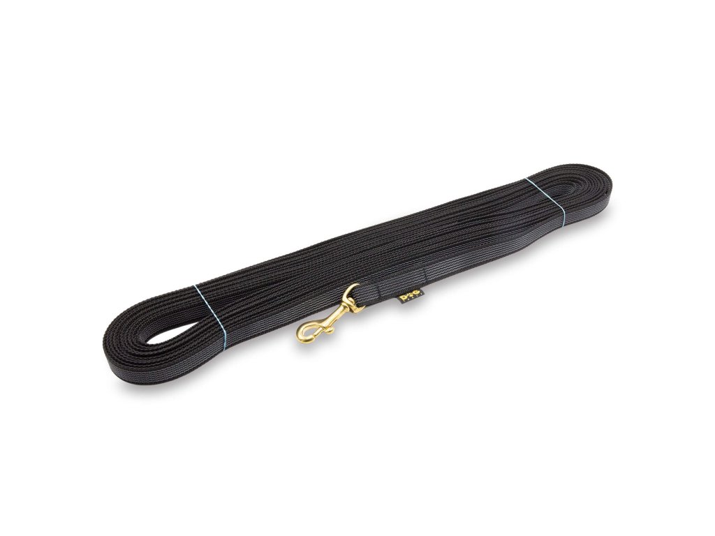 Pogumovaná stopovacia šnúra s mosadznou sponou, ktorá odoláva veľmi nízkym teplotám a vysokému zaťaženiu. Pogumovaný povrch sa ľahko udržiava. Vodítko nemá rukoväť.