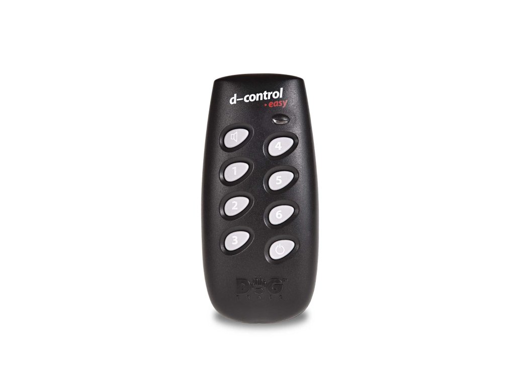 Vysielač Dogtrace s dosahom 200 m, funkcia zvuku, 6 úrovní stimulačných impulzov. Kvôli zníženému počtu korekčných impulzov vhodný len pre malé plemená psov.