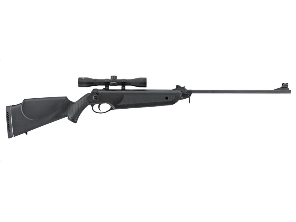 Hämmerli Black Force 400 Combo je dobre ovládateľná zalamovacia vzduchovka kalibru 4,5 mm s pružinovým pohonom, prichádza v sete s kvalitným zameriavačom so 4-násobným zväčšením. Nízka hmotnosť a robustná polymérová pažba s úložným priestorom ho predurčujú na vonkajšie použitie. Drážkovaná hlaveň zaisťuje vysokú presnosť. 11 mm drážky pre stabilné uchytenie puškohľadu 4x32 (je súčasťou balenia). Black Force 400 Combo možno voliteľne použiť aj bez puškohľadu, keďže je vybavená nastaviteľnými, dobre viditeľnými mieridlami z optických vlákien. Medzi ďalšie funkcie patrí automatická poistka, ktorá sa aktivuje ihneď po natiahnutí, otvory na popruh a gumová bodka s otvormi absorbujúcimi nárazy.PARAMETRE: