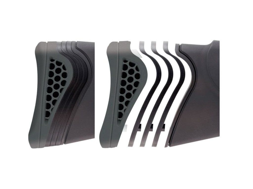 TRIOPAD®: systém pre maximálnu absorciu spätného rázu + 3 nástavce na predĺženie pažby pre nastavenie individuálneho úchopu.